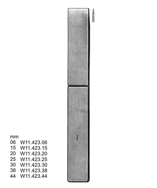 Previous Product Next Product Lambotte Bone Chisel Lambotte Bone Chisel Straight 20mm Stainless Steel SKU: W11-423-20 Categories: Bone Surgery, Surgical Instruments Description Reviews (0) Description Lambotte Bone Chisel Straight 20mm Stainless Steel Reviews There are no reviews yet. Be the first to review “Lambotte Bone Chisel” Cancel replyYour email address will not be published. Required fields are marked *Your rating * Rate… Perfect Good Average Not that bad Very poor Your review *Name * Email * Save my name, email, and website in this browser for the next time I comment. Opens in a new window Tweet This Product Opens in a new window Share on Facebook Opens in a new window Pin This Product Opens in a new window Mail This Product Related products Quick View Quick View Strabismus ScissorsOperating Scissors, Surgical Instruments Quick View Quick View Thorek ScissorsOperating Scissors, Surgical Instruments Quick View Quick View Castroviejo ScissorsOperating Scissors, Surgical Instruments